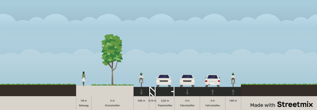 Geplanter Straßenquerschnitt in der Köferinger Straße auf Höhe des D-Programms
