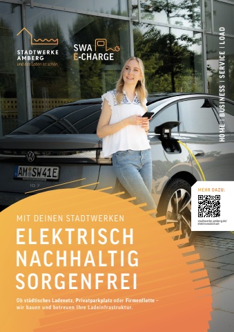 MIT DEINEN STADTWERKENELEKTRISCHNACHHALTIGSORGENFREIMEHR DAZU:stadtwerke-amberg.de/elektromobilitaetOb st%u00e4dtisches Ladenetz, Privatparkplatz oder Firmenflotte %u2013 wir bauen und betreuen Ihre Ladeinfrastruktur.HOME %u0406 BUSINESS %u0406 SERVICE %u0406 LOAD
