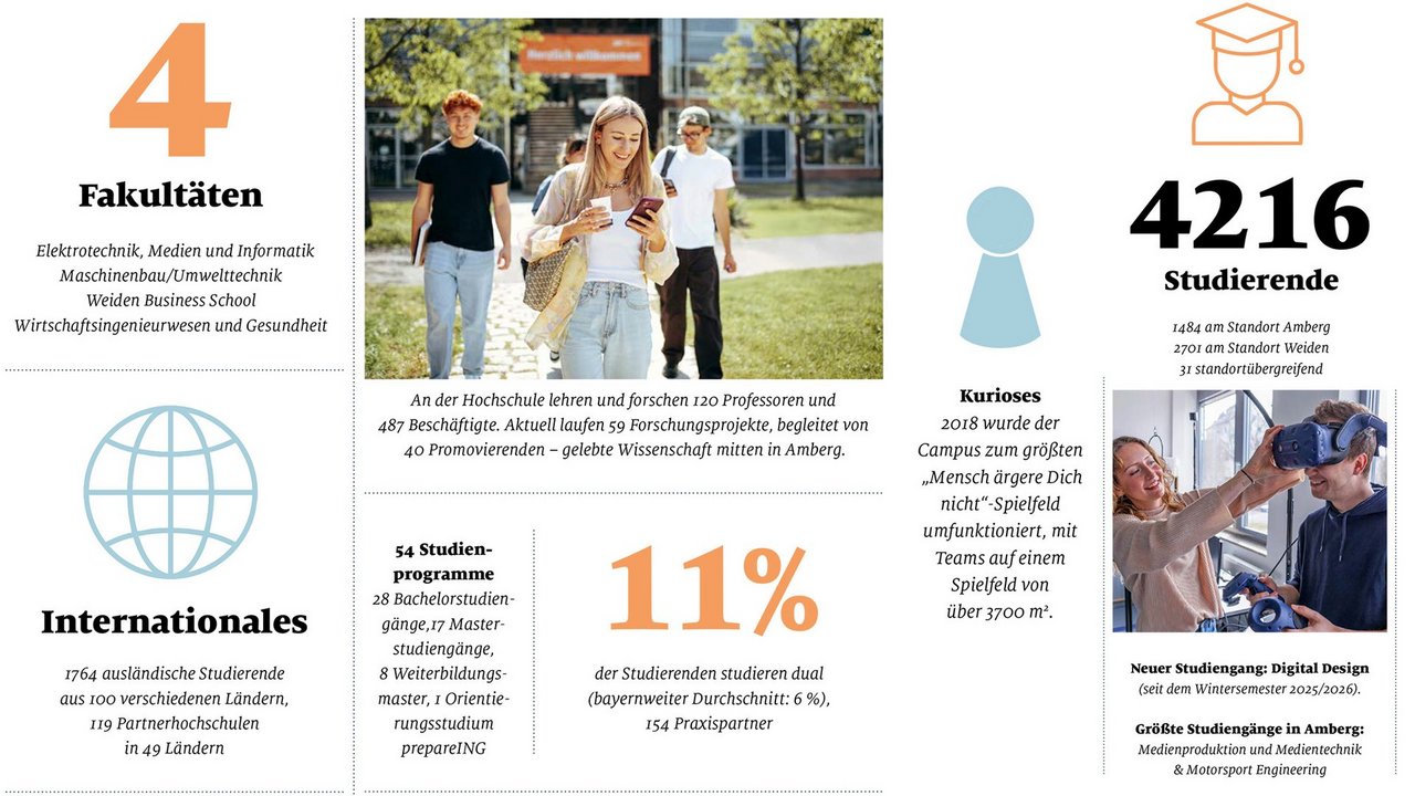 Bulitta: Wir verstehen uns als eine Hochschule in der Region und für die Region, in der Stadt Amberg und für die Stadt Amberg. Aktuell sind wir in Gesprächen zu einer Nachfolgeflächennutzung des ehemaligen Zinkl-Areals hin zu einem attraktiven Ort für studentisches Wohnen und Co-Working. Weitere Impulse sind die Unterstützung von Existenzgründungen im Rahmen der Digitalen Gründerinitiative Oberpfalz, die aktive Einbindung der Amberger Wirtschaft in unseren Partner Circle oder die innovativen Lernorte in der Stadt Amberg. Ein sehr erfolgreiches Beispiel ist auch die „Nacht der Wissenschaft“ mit rund 7.000 Besuchern und das „Lumina-Fest“. Nicht zuletzt gehen wir mit unserer Akademischen Feier in die Stadt Amberg und richten diese im November im Kongregationssaal aus.