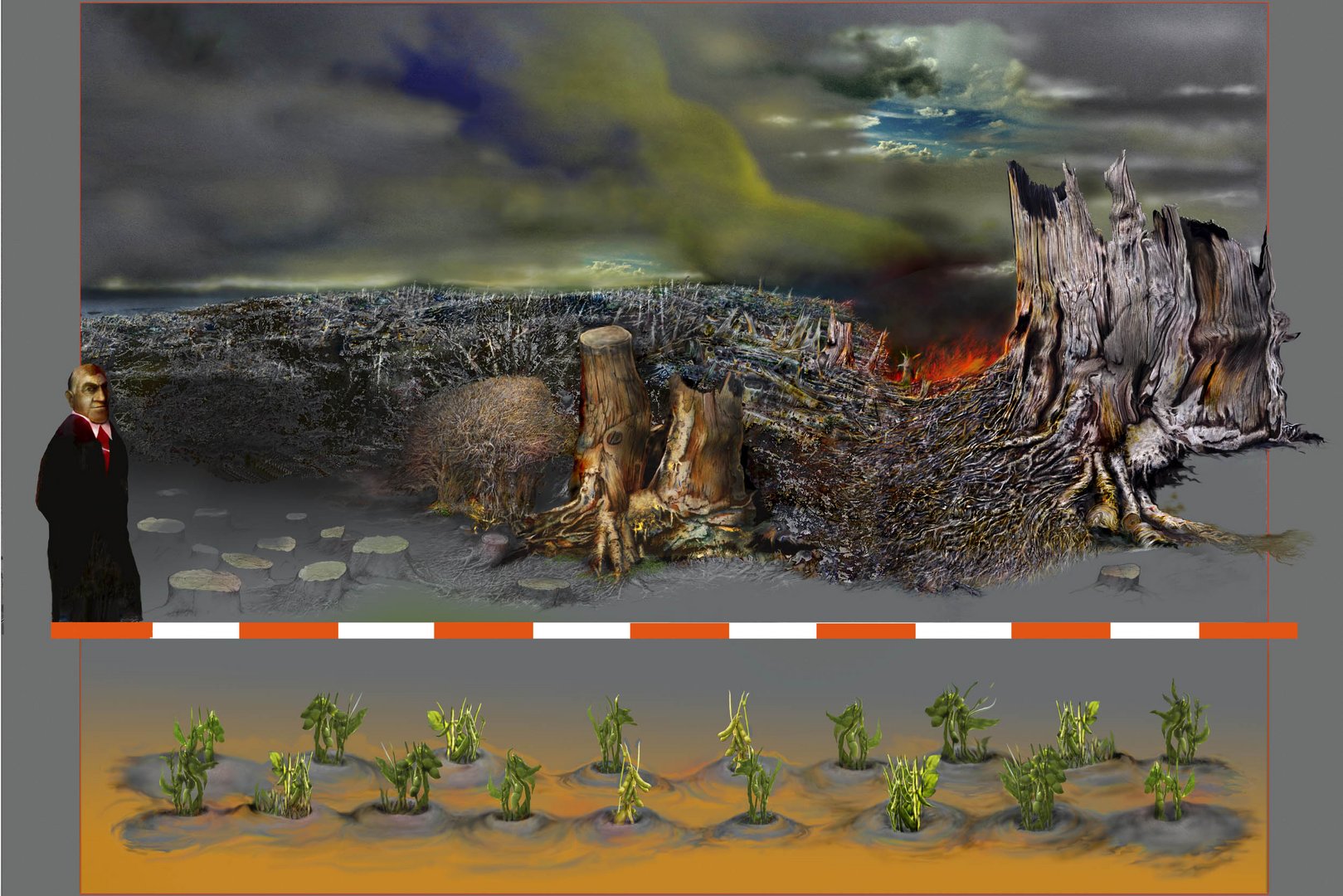 In der Ausstellung zeigt Fütterer u. a. computergenerierte Malerei auf Lastwagenplanen oder Aludibondplatten.
